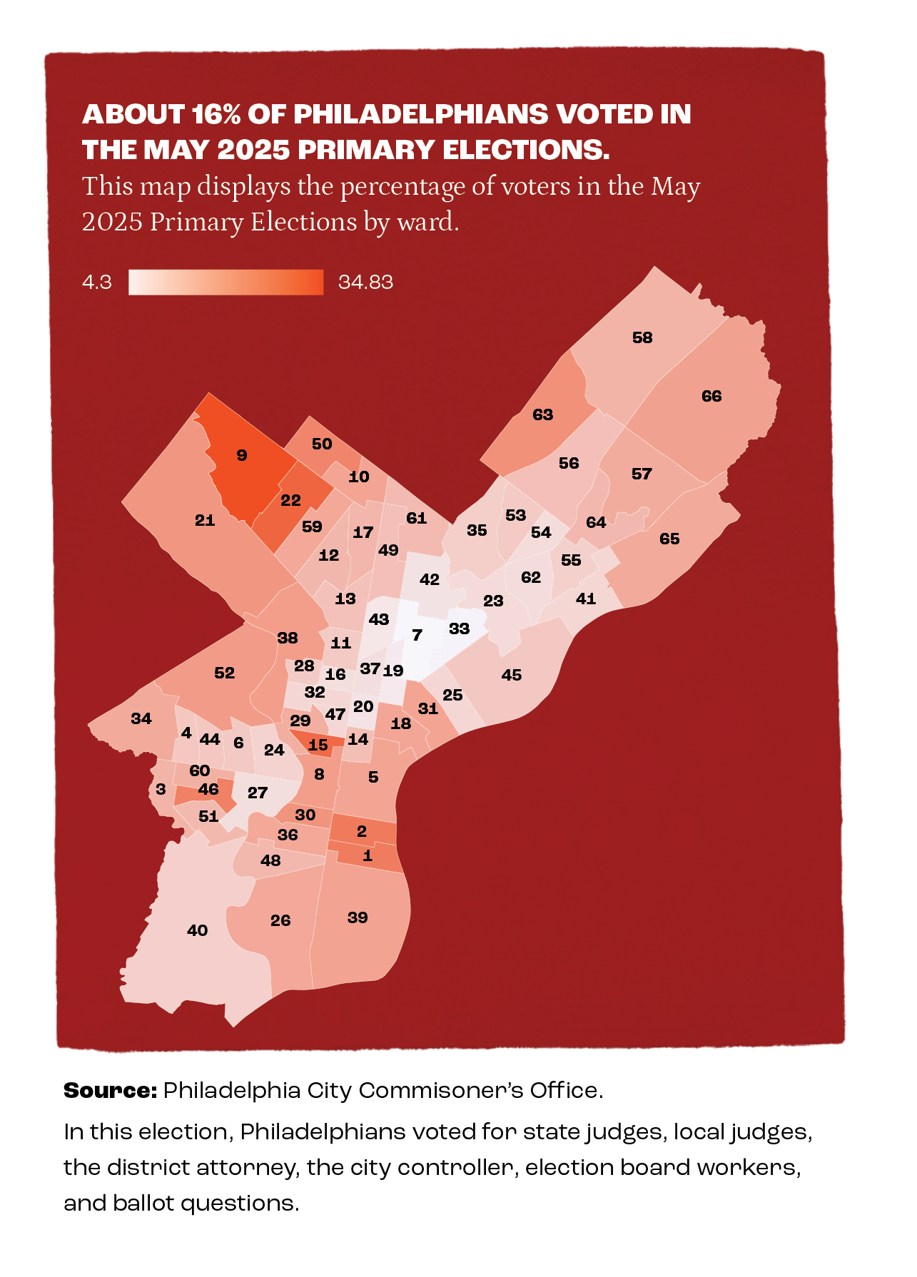 According to Pew’s 2025 State of the City report, the majority of Philadelphians are food preparation workers, cashiers, janitors, home health aide workers, and construction laborers. All of which typically work outside of a 9-to-5 shift. With looming SEPTA cuts from a lack of state funding, in a state where there is no mandated voter leave, Philadelphia’s low voter-turnout problem could intensify with limited public transportation or no service at all.