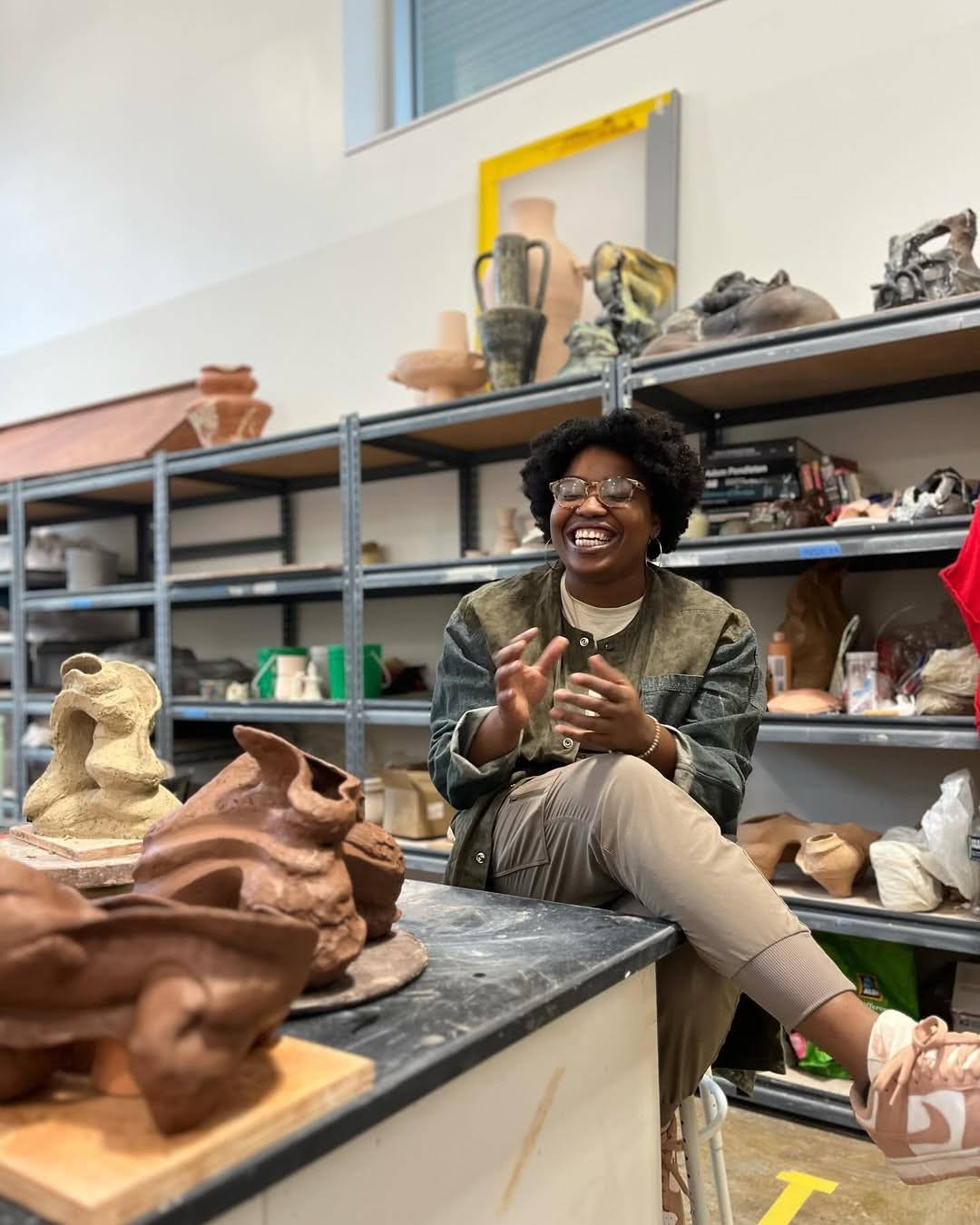“Clay is a very personal material to me. When I put my hands in the clay and my fingers get lost in the mixture, for the moment, we become one.” Michelle Ettrick is a proud ceramicist who traveled to the US at 12 years old from Panama. She has taught across the nation, most recently at the University of Pennsylvania here in Philly. Her work explores identity, acceptance and beauty and is an embodiment of Black girl magic.