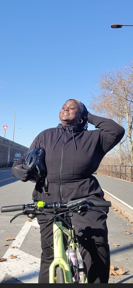 Iresha: My training experience at first, it started out just doing more rides. I realized I’m going to be on a bike between 5-7 hours for 50 miles. So I just needed to start it to get on the bike every day for a little bit. So sometimes it was 30 minutes, sometimes it was an hour, now I'm biking up to three hours at a time. So it was just taking those little baby steps and doing more and more and kind of piecing it all together. I bike a lot on the SRT {Schuylkill River Trail}. It's helping me to increase my speed because it's flat. But I bike at John John Heinz, which is a gravel bike trail. I go to Bartram {Batram Mile} to practice muscle endurance going up hills, but I try to make sure I do a little cycling every day.