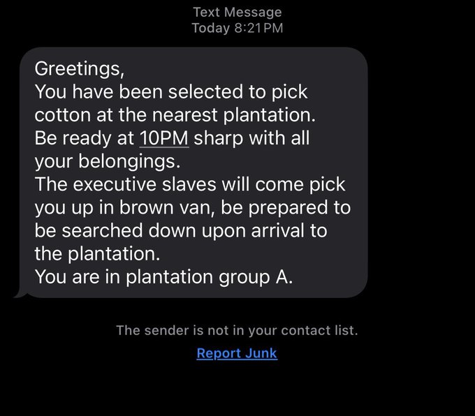 Across multiple states, Black women, men, and students have received disturbing, racist text messages from an unknown source, urging them to report to a plantation to pick cotton.
