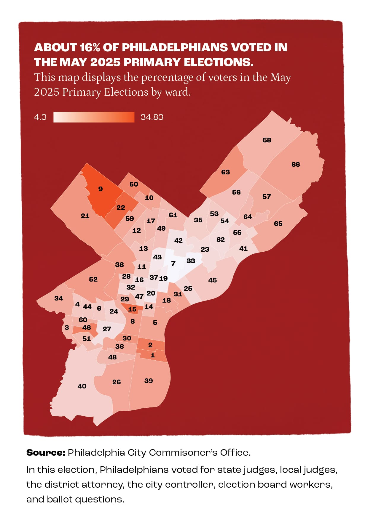 According to Pew’s 2025 State of the City report, the majority of Philadelphians are food preparation workers, cashiers, janitors, home health aide workers, and construction laborers. All of which typically work outside of a 9-to-5 shift. With looming SEPTA cuts from a lack of state funding, in a state where there is no mandated voter leave, Philadelphia’s low voter-turnout problem could intensify with limited public transportation or no service at all.