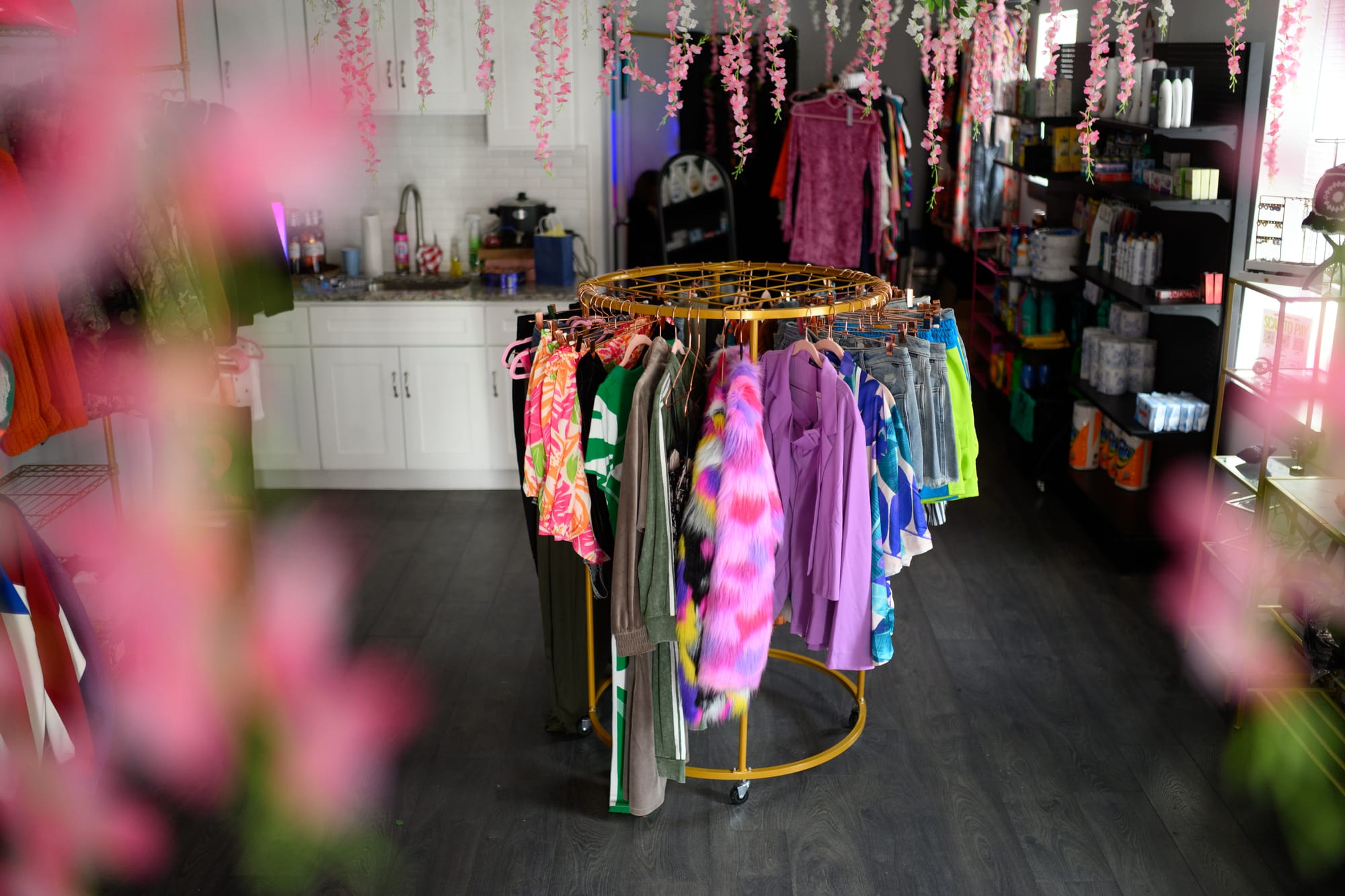 Every day she has color-coded deals starting at $10 for yellow tags to $25 for pink tags. Retro Rewind started in a traveling pop-up van that Whitfield “blinged out.” The van, which also included a fitting room, would typically station itself on college campuses. Then she found her current location which her husband, son, and a team of construction workers ripped out the inside to create Tia’s vision.