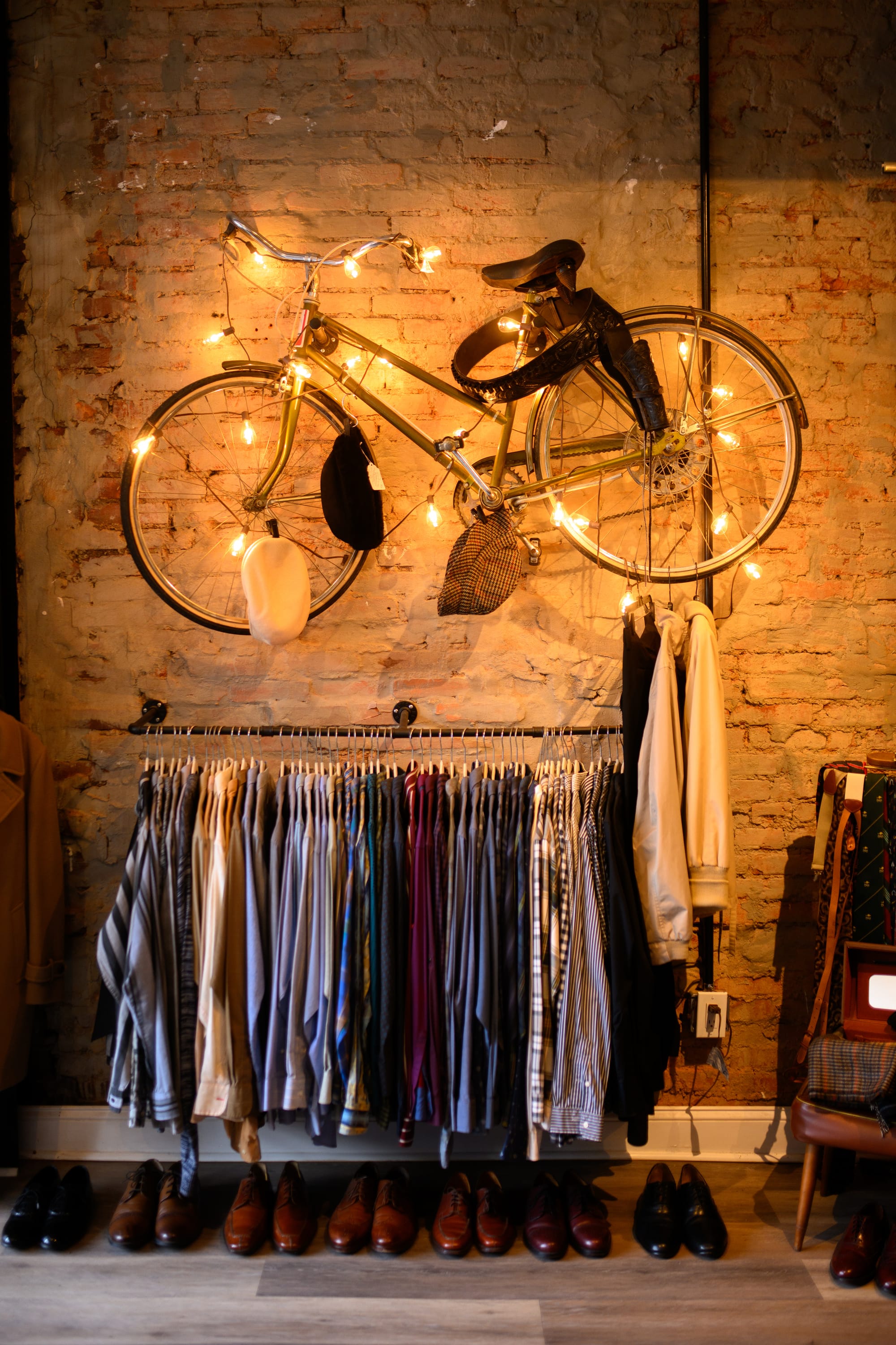 Left: Shoes at The Blended Boutique. Center: A collection of shirts, shoes and other clothes line a wall at Retro Rewind Vintage & Thrift. Left: Hats, bags and jewelry sit on a shelf at The Blended Boutique. CREDIT: Kriston Jae Bethel for The Philly Download